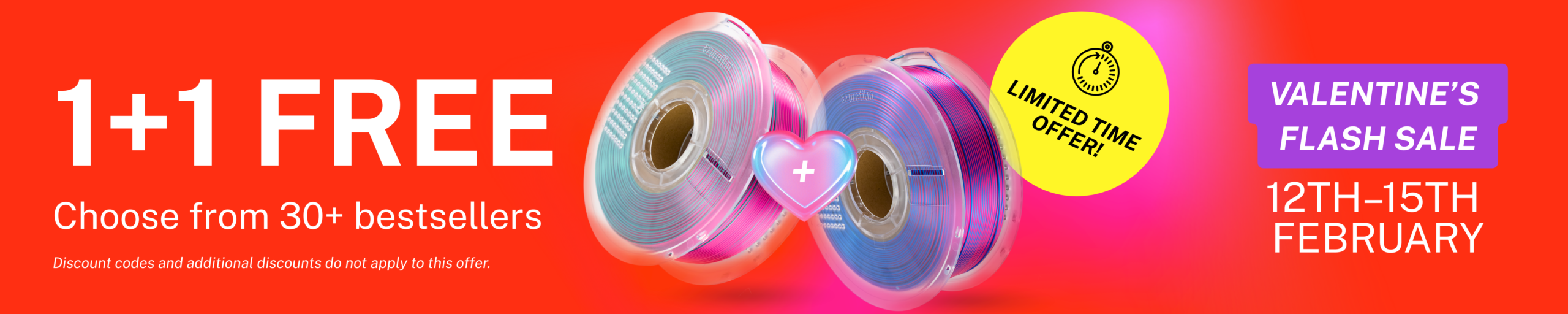 From February 12th to the 15th, you can buy one spool and get another one completely free. No code, no catch — just double the filament for the same price.