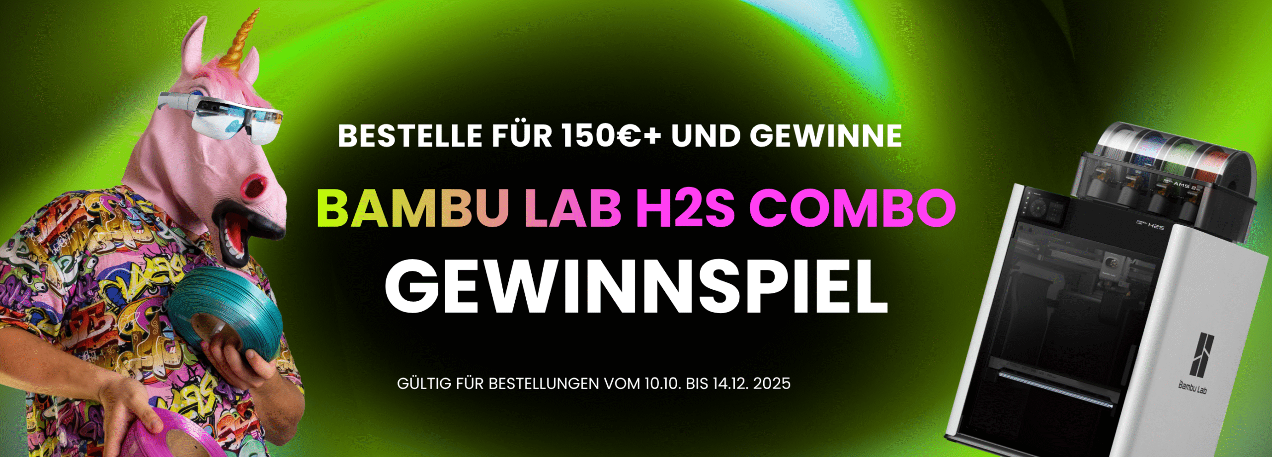 Dieses Jahr verlosen wir den brandneuen Bambu Lab H2S Combo – schneller, smarter und vollgepackt mit Features für Drucke auf nächstem Level!