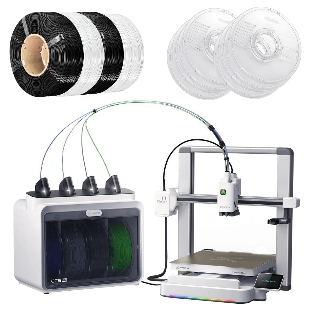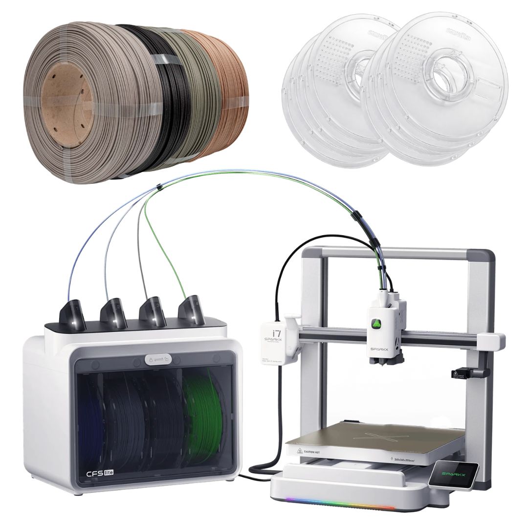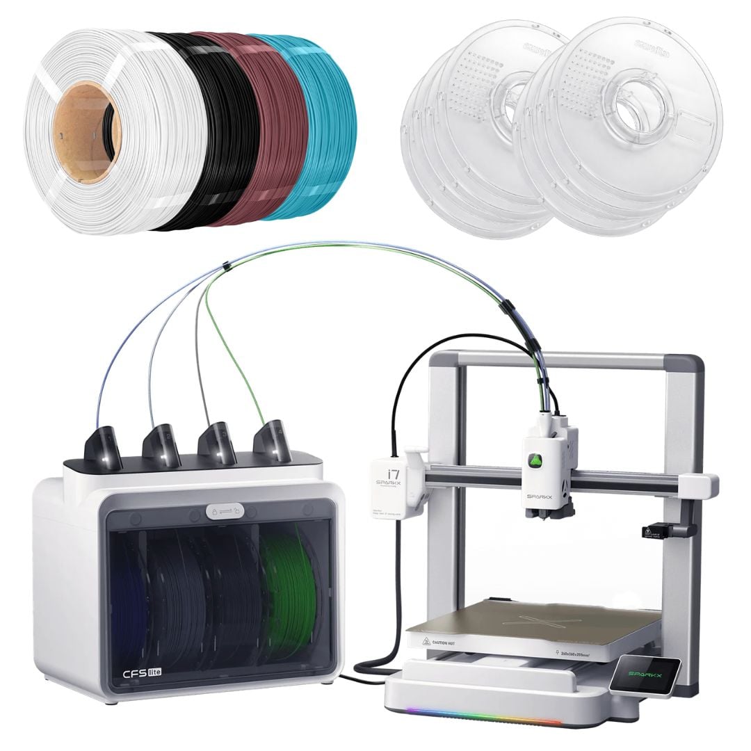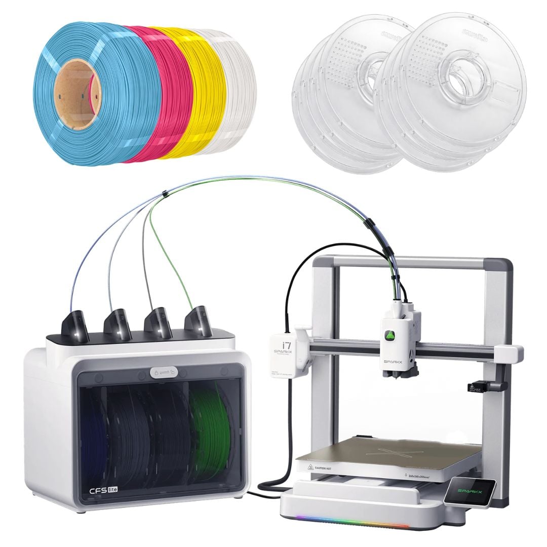 Creality SPARKX i7 Color Combo in Kombination mit 4 Kilogramm AzureFilm Refill Filamenten und Master Spool 4-pack.
