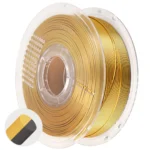 PLA Silk Multicolor filamenti kombiniraju jednostavnost ispisa PLA s elegantnim, sjajnim završetkom. Zahvaljujući naprednoj ko-ekstrudiranoj tehnologiji dostupni su u dvobojnim i trobojim varijantama, gdje su dva ili tri tona spojena u jednu nit filamenta. Rezultat su glatki prijelazi boja i jedinstveni vizualni efekti koji se mijenjaju ovisno o kutu gledanja.
