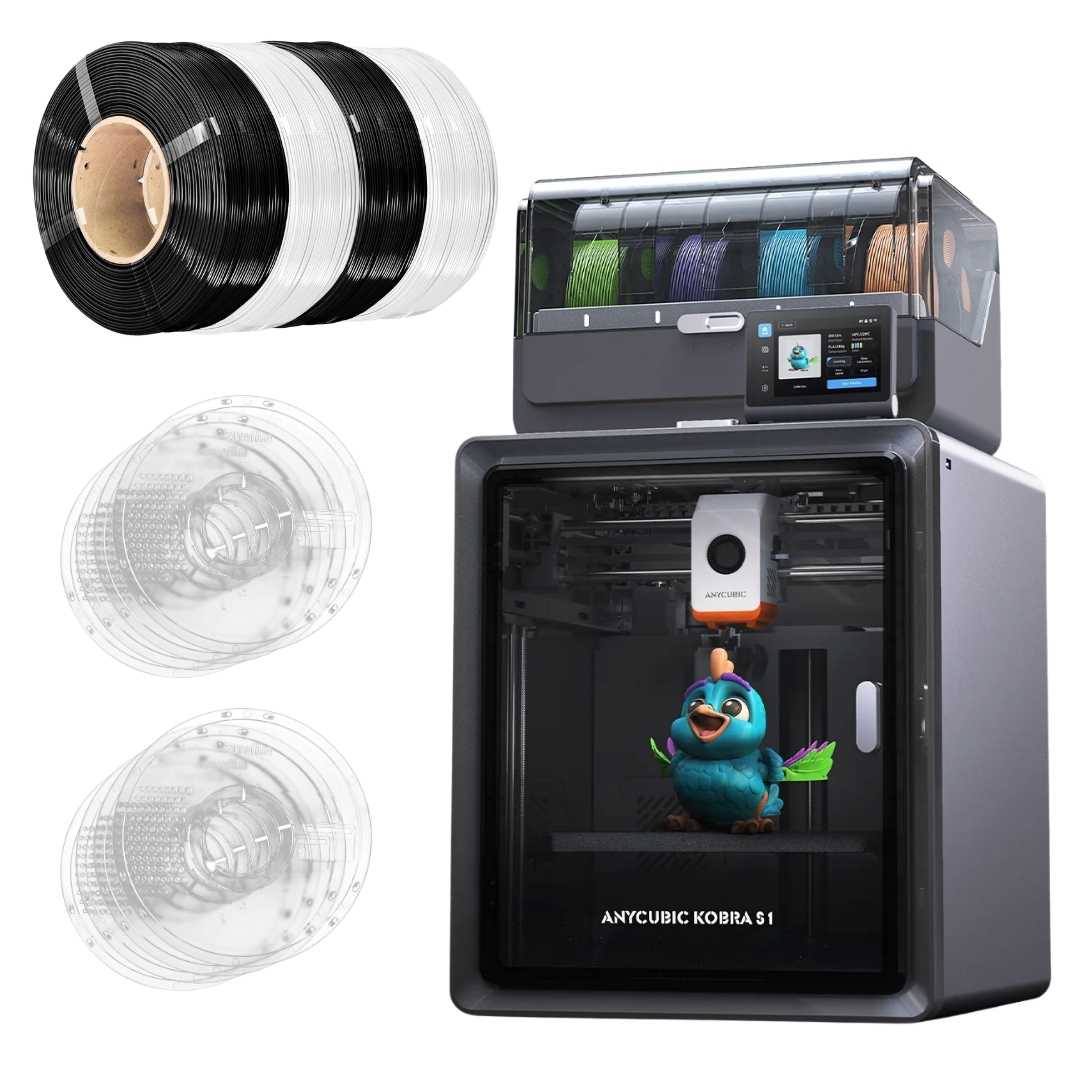 The Anycubic Kobra S1 Combo is a fast, versatile and feature‑rich 3D printer built for makers who want dynamic multi‑color prints, advanced automation, and reliable performance straight out of the box. Combining a closed‑frame CoreXY design, high‑speed motion systems, and a packed ACE Pro multi‑filament system, the Kobra S1 delivers vibrant, complex prints with smart controls and pro‑level workflow support.