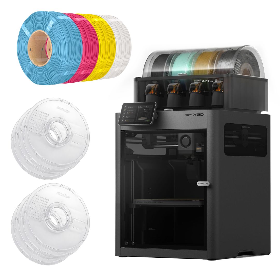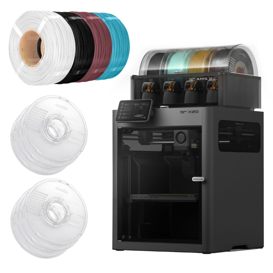 The Bambu Lab X2D Combo is the next evolution of the X-series, developed for high-precision multi-material 3D printing with professional support workflows. With its dual-extruder architecture, enclosed actively heated chamber, and intelligent sensor system, it is designed to produce functional parts, complex geometries, and clean support interfaces with impressive consistency. Paired with the AMS 2 Pro, it also enables automated multi-material and multi-colour printing with fast filament switching and integrated drying.